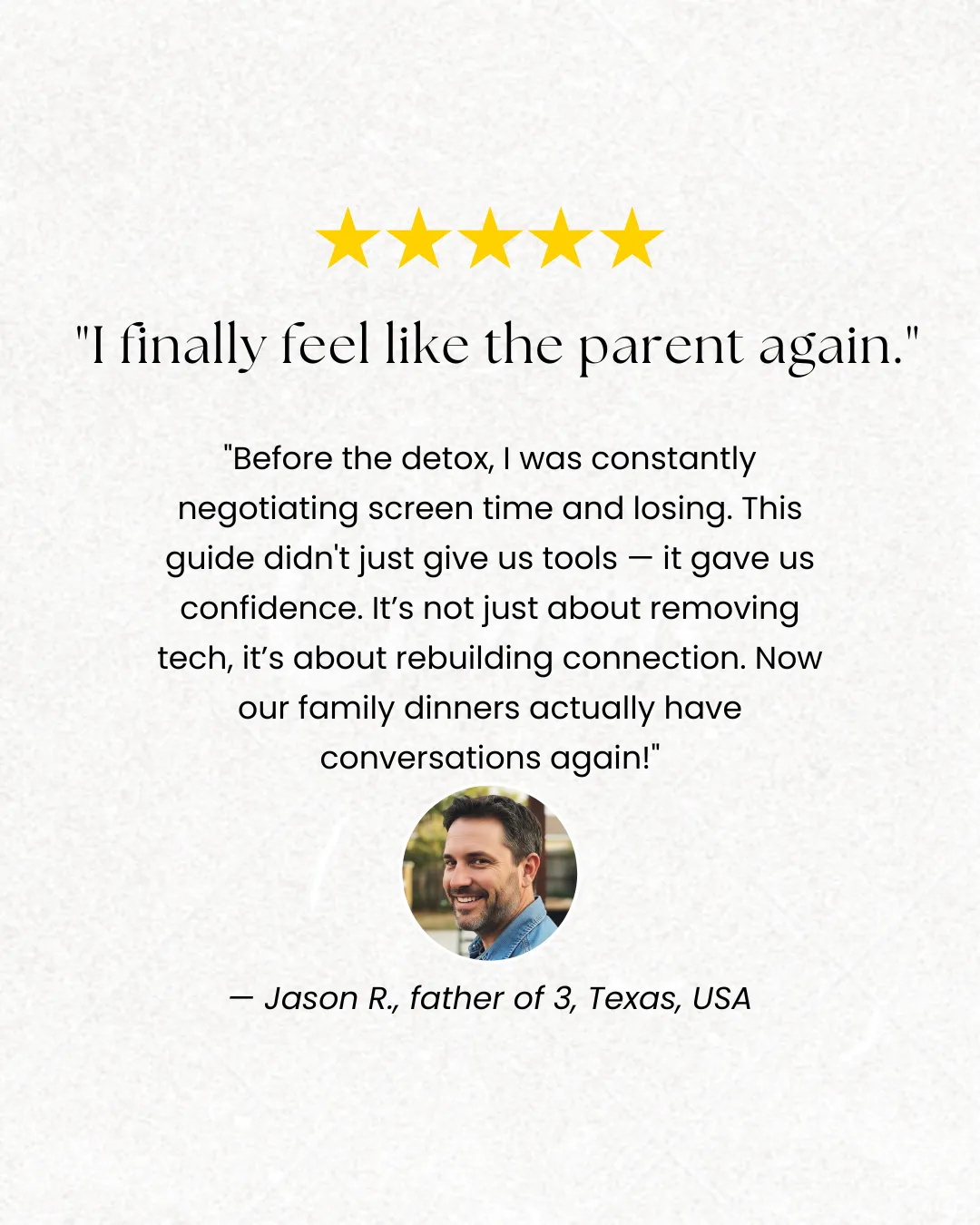 While other parents struggle with escalating screen battles, you'll be reconnecting with your child using our proven system.